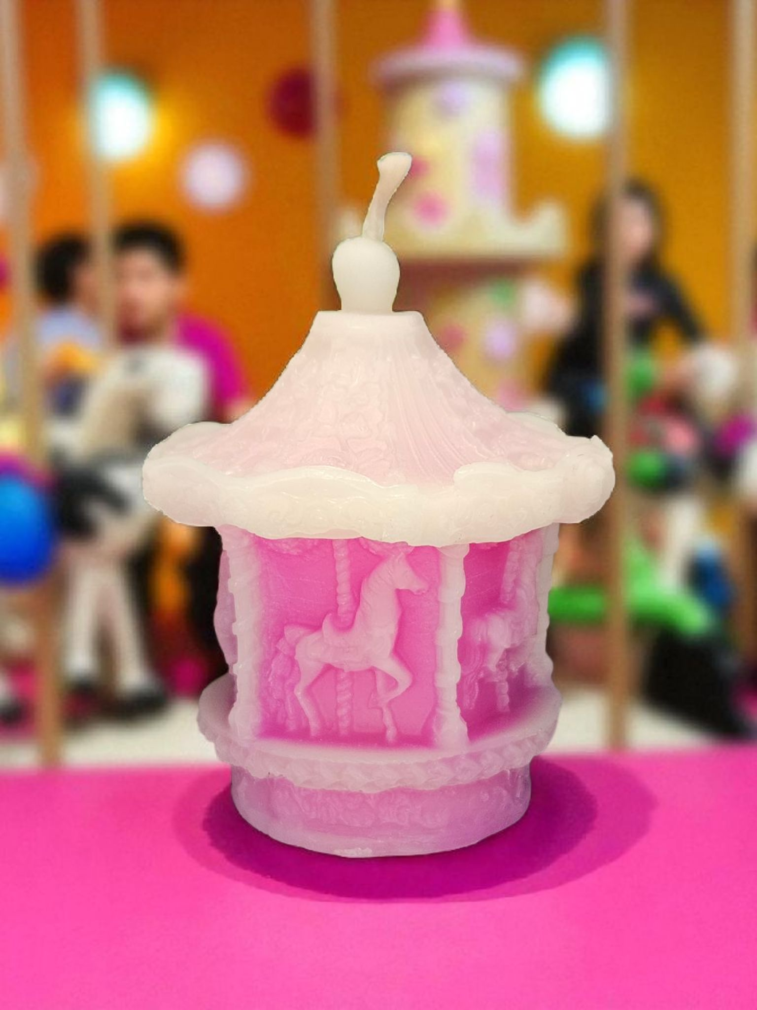 Bienenwachskerze Karussel Rosa/Weiß aus 100% gebleichten Bienenwachs
