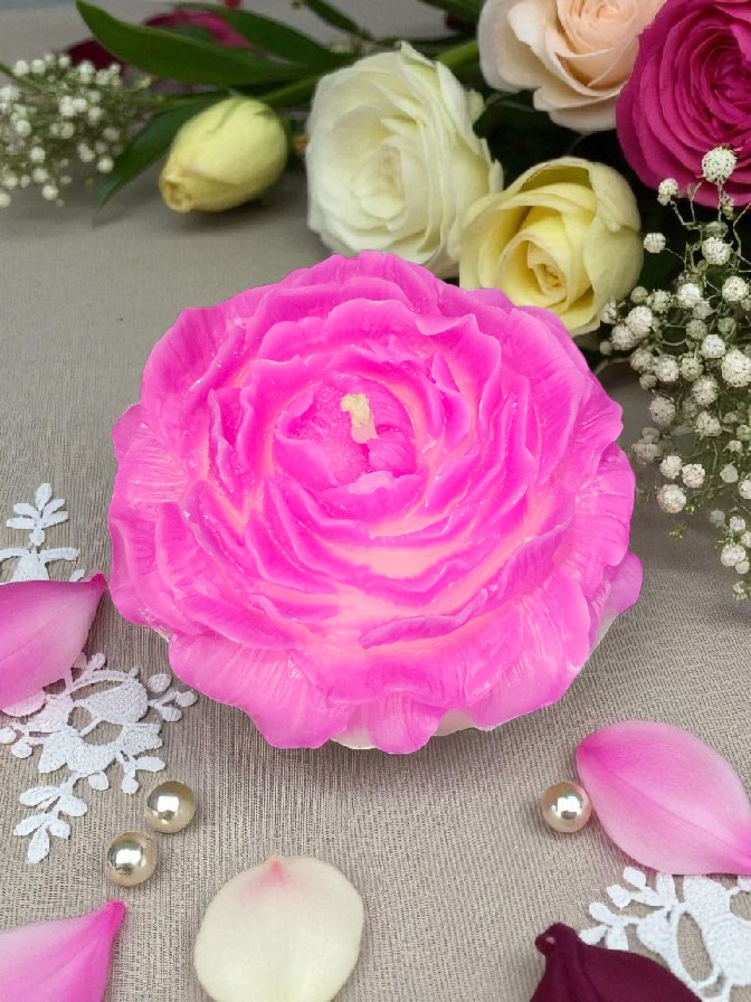 Bienenwachskerze Rose Rosa/Weiß aus gebleichen Bienenwachs