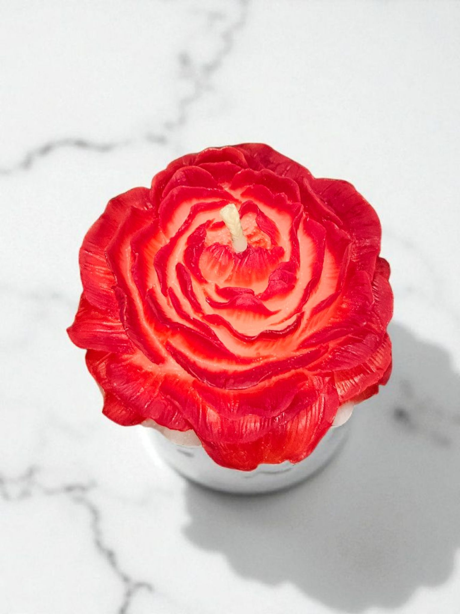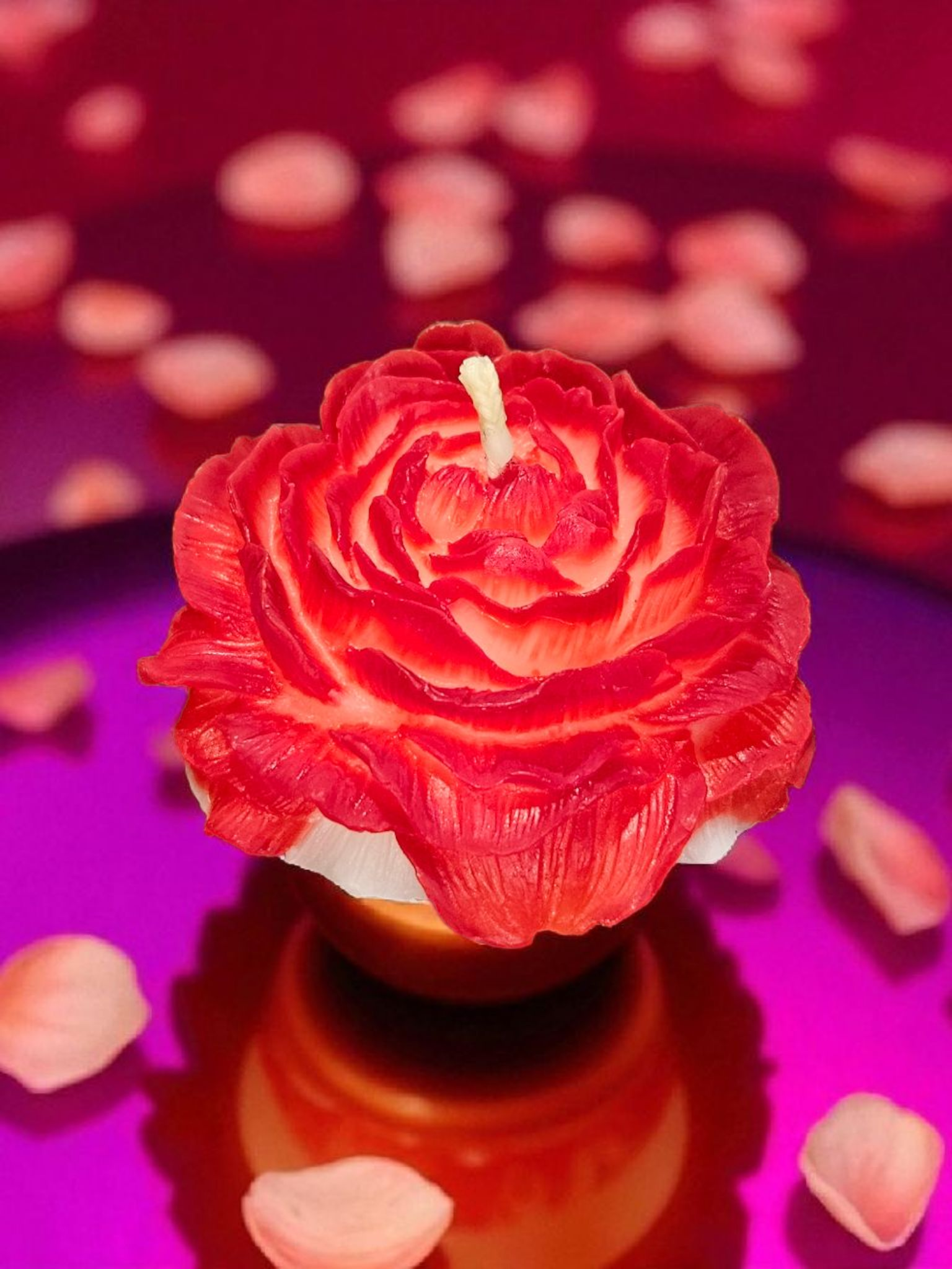 Bienenwachskerze Rose Rot/Weiß aus gebleichten Bienenwachs