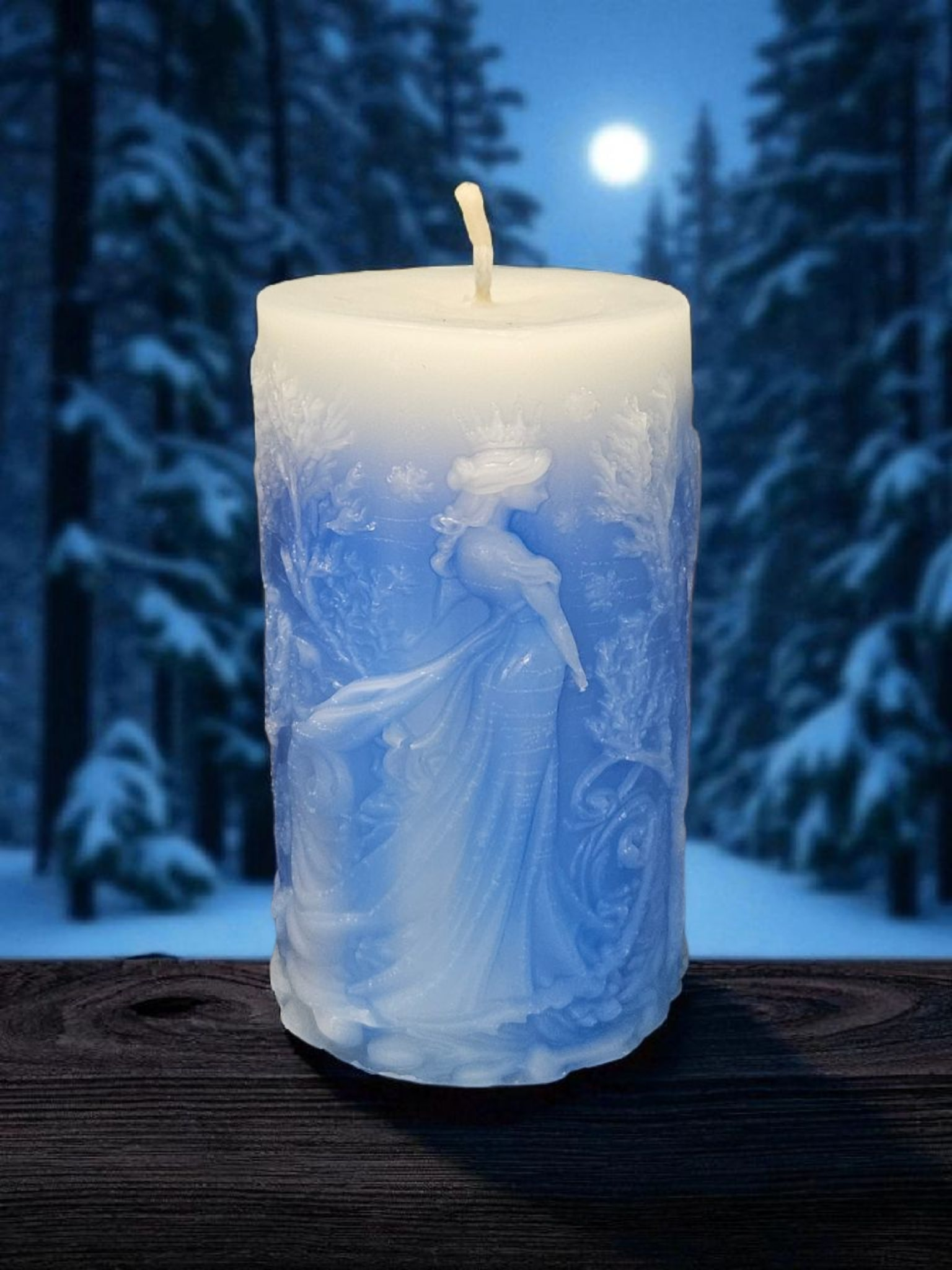 Bienenwachskerze Schneekönigin Blau/Weiß aus 100% gebleichten Bienenwachs