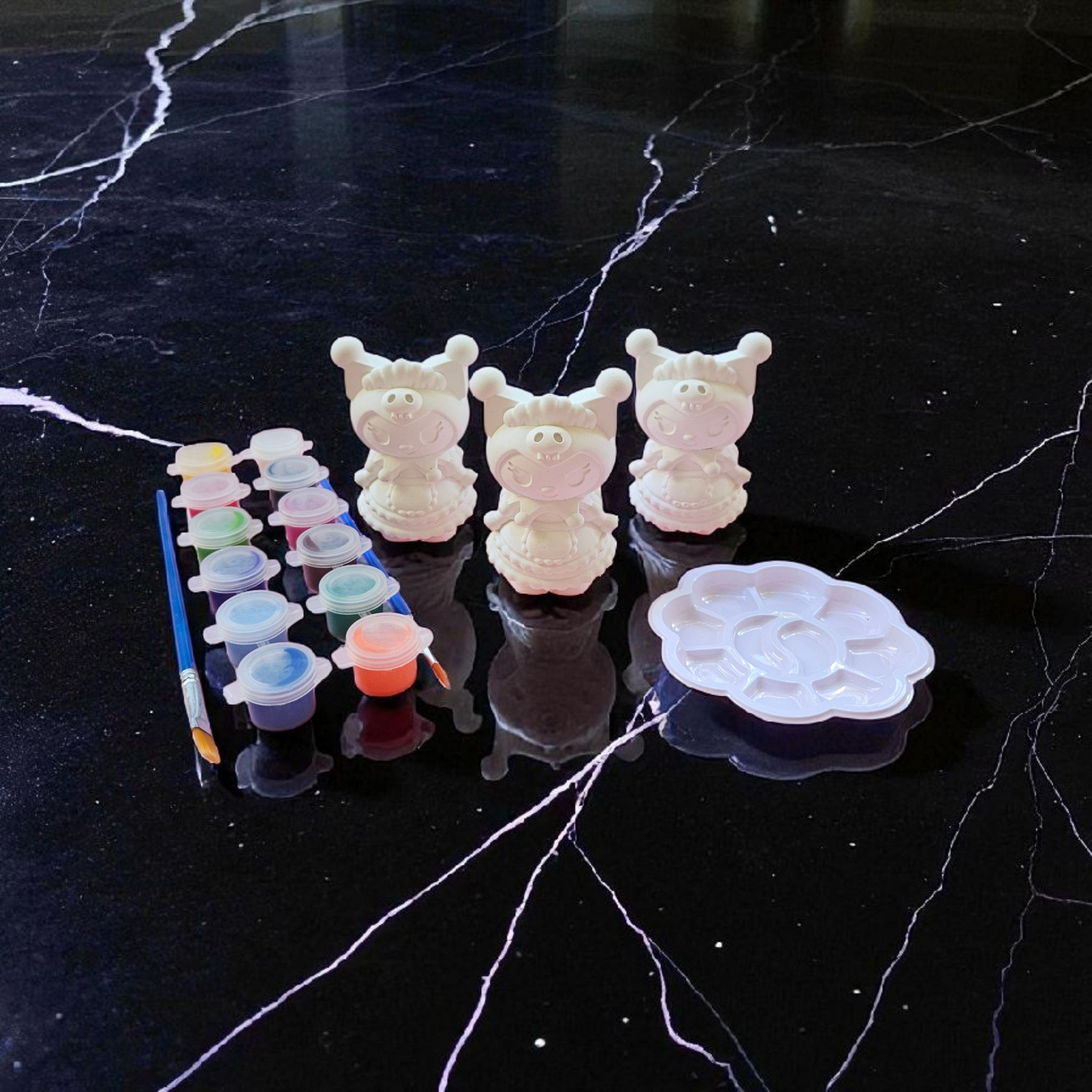 Raysin Labubu ähnliche Figuren mit 12 Aquarellfarben, Pinsel und Farbmischplatte